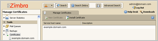 Fichier:ZimbraAdminConsoleManageCerts.png
