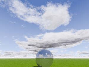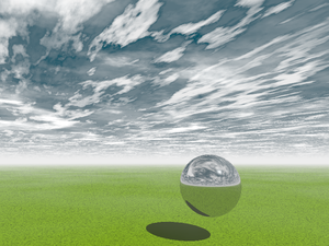 Pour faciliter de trouver une position du solei précisement entre les nuages on peut utiliser une sphère avec un texture miroitant et avec phong par ex. "Polished_Chrome". |