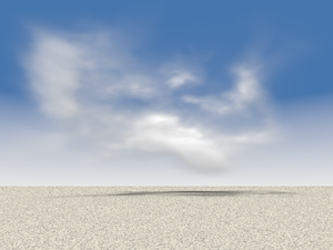 | Le ciel est formé d'un plan bleu décoré avec quelques nuages. Les nuages deviennent plus petites vers l'horizon - cela est réaliste ! Cet effet, on ne peut pas le simuler avec une "sky_sphere" !
