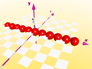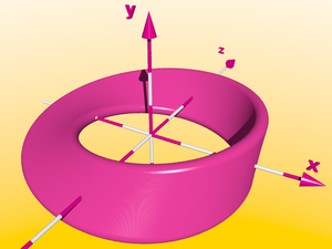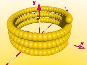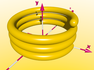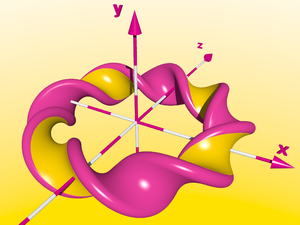 | Dans les derniers échantillons nous avons la plupart du temps employé des sphères. Si nous employons des ellipsoïdes à leur place, nous gagnons la possibilité de les tourner durant le déplacement, comme dans le Möebius.