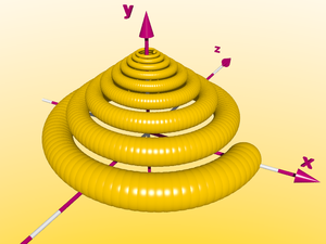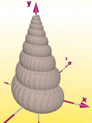 Dans les derniers exemples de spirale, les sphères avaient toujours la même taille. Maintenant nous verrons comment réduire continuellement la taille des sphères, le rayon et la taille de la base du vissage, pour en faire un escargot